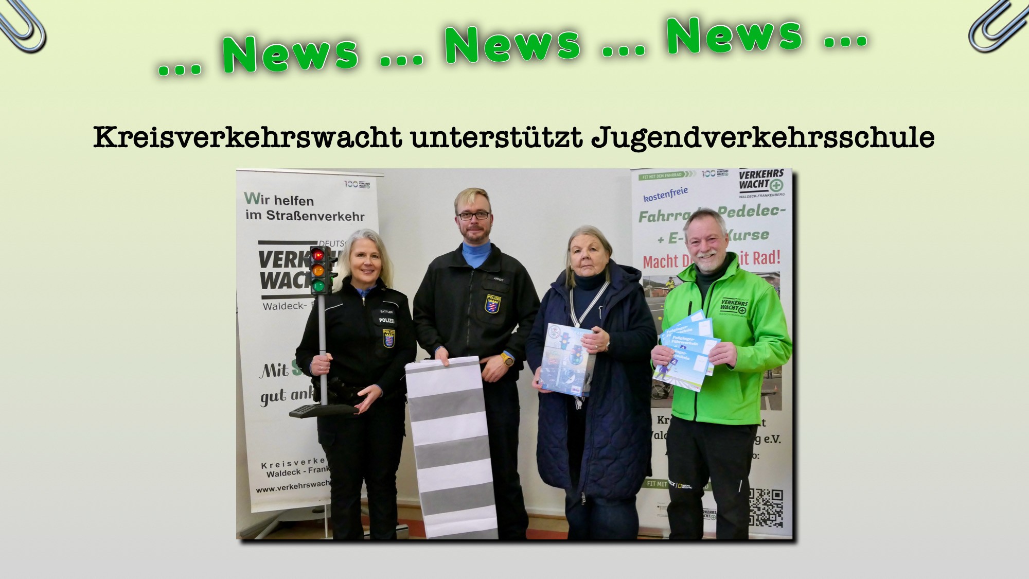 Kreisverkehrswacht spendet den Jugendverkehrsschulen im Landkreis 2 Ampel und Zebrastreifen-Teppiche sowie „Fußgängerführerscheine“ für Kids. Die Materiellen unterstützen die Polizeibeamten der Jugendverkehrsschule bei ihrer wichtigen Arbeit zur Verkehrserziehung. Sie vermitteln Kindern Verkehrsregel altersgerecht und praxisnah und tragen so zu mehr Sicherheit im Straßenverkehr bei.